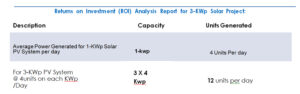 Customer will become Self-sufficient in generating power and become freed from electricity bills with less maintenance for the 4 Years and there after until another 20 Years the end user can utilize generated power with a bare minimum maintenance cost along with an average unitage cost lesser than regular DISCOM unit charges thereby client gains benefit more than the ROI Factor for 25 Years period.